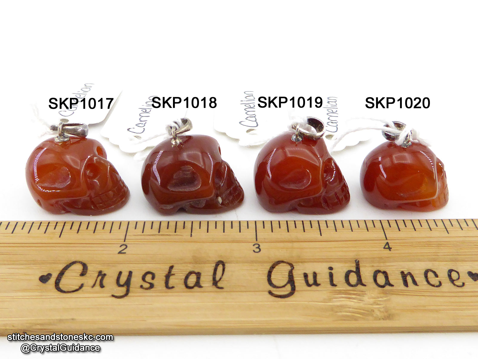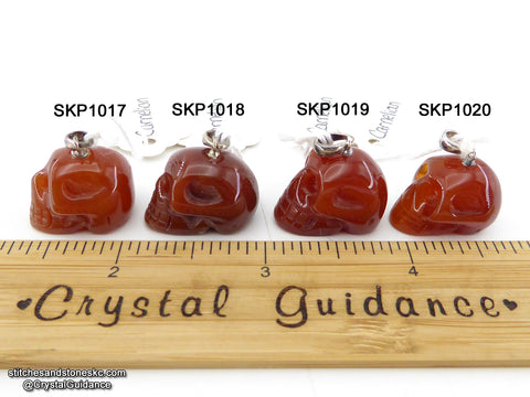 This listing is for a QUANTITY of 1 (ONE) Carnelian crystal skull pendant with sterling silver bail. You will receive the exact crystal of your choosing that is shown in the photos. [This item has free US shipping.]