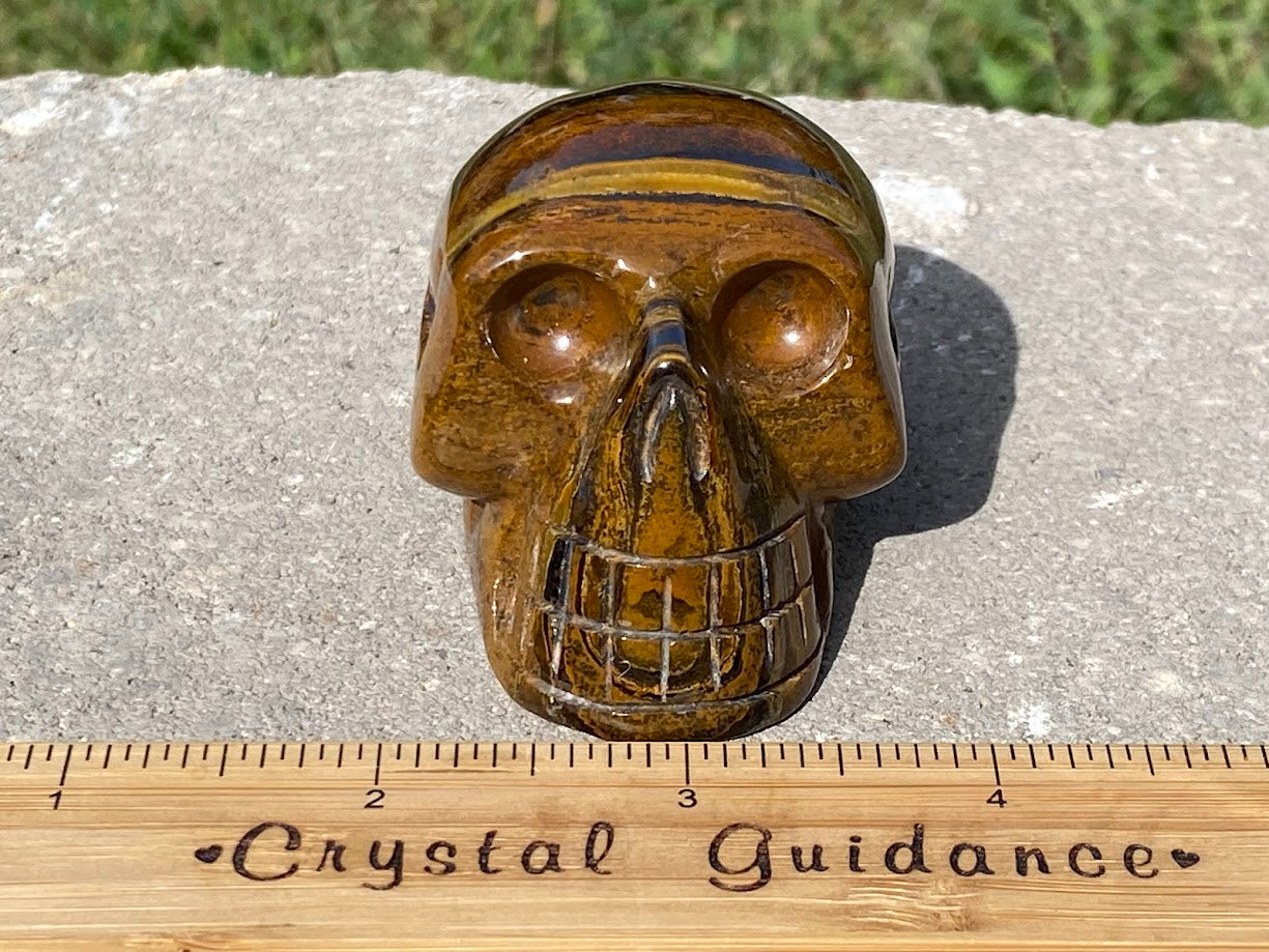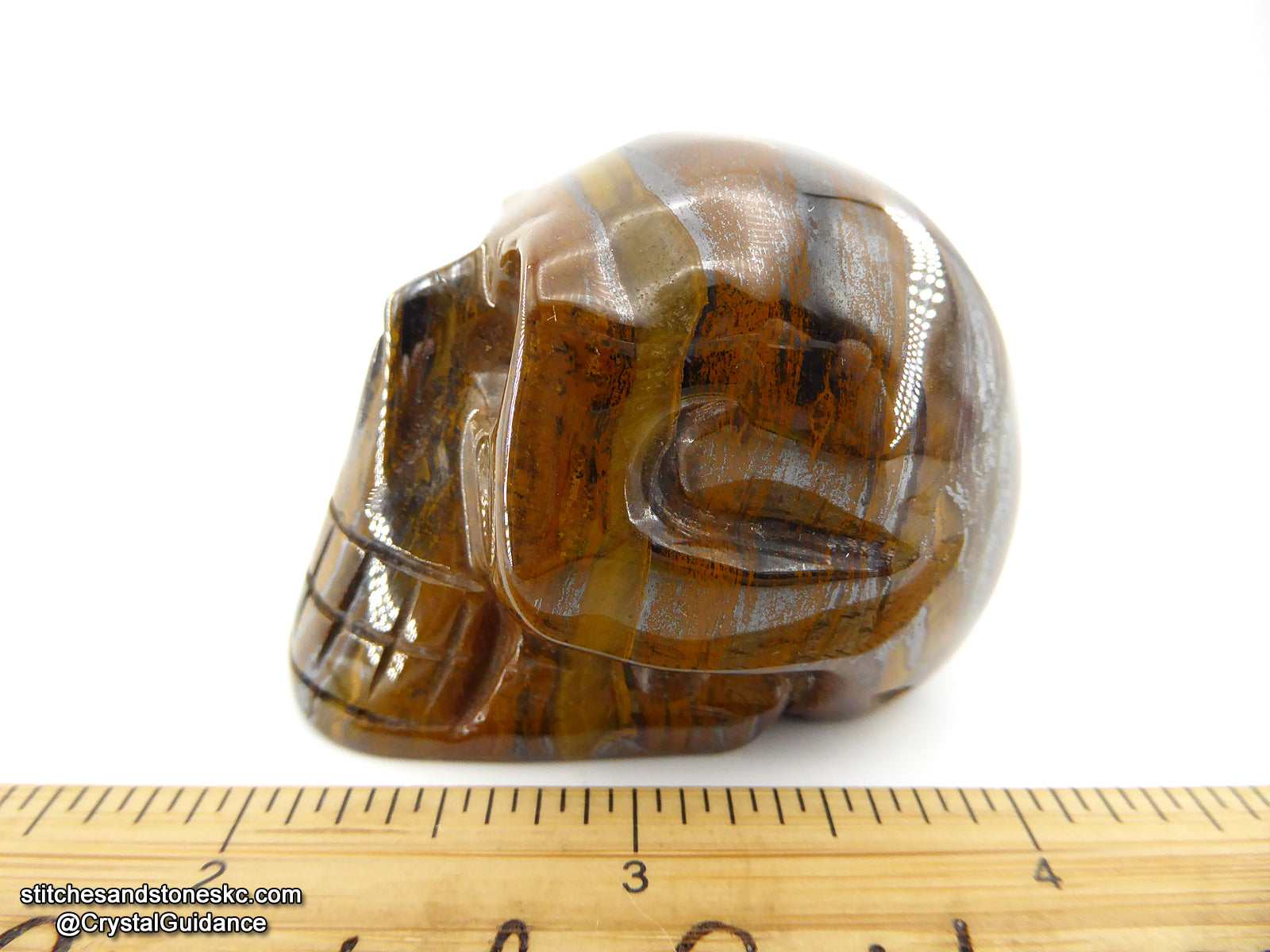 This listing is for a QUANTITY of 1 (ONE) Tiger's Eye crystal skull. You will receive the exact crystal that is shown in the photos. [This item has free US shipping.]